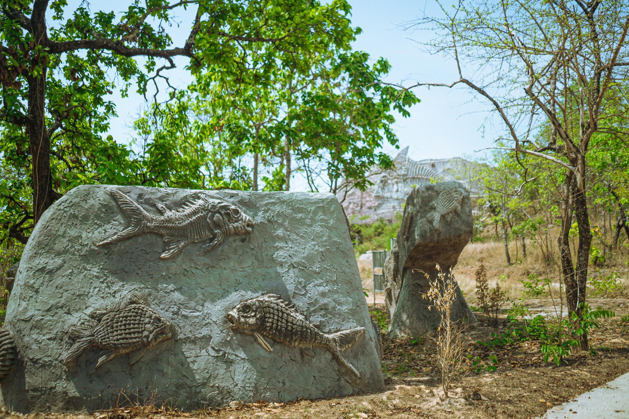 ภูน้ำจั้นเป็นแหล่งขุดค้นฟอสซิลปลาโบราณ ที่มีฟอสซิลมากมายหลายชนิดฝังตัวอยู่ ขณะเดียวกันเส้นทางในการเดินทางมาชมนั้น ขนาบไปด้วยป่าต้นยางพารา สลับกับทุ่งนา และถนนที่ยังสมบูรณ์ ทำให้ภูมิประเทศเหมาะแก่การชับขี่เพื่อชมวิว