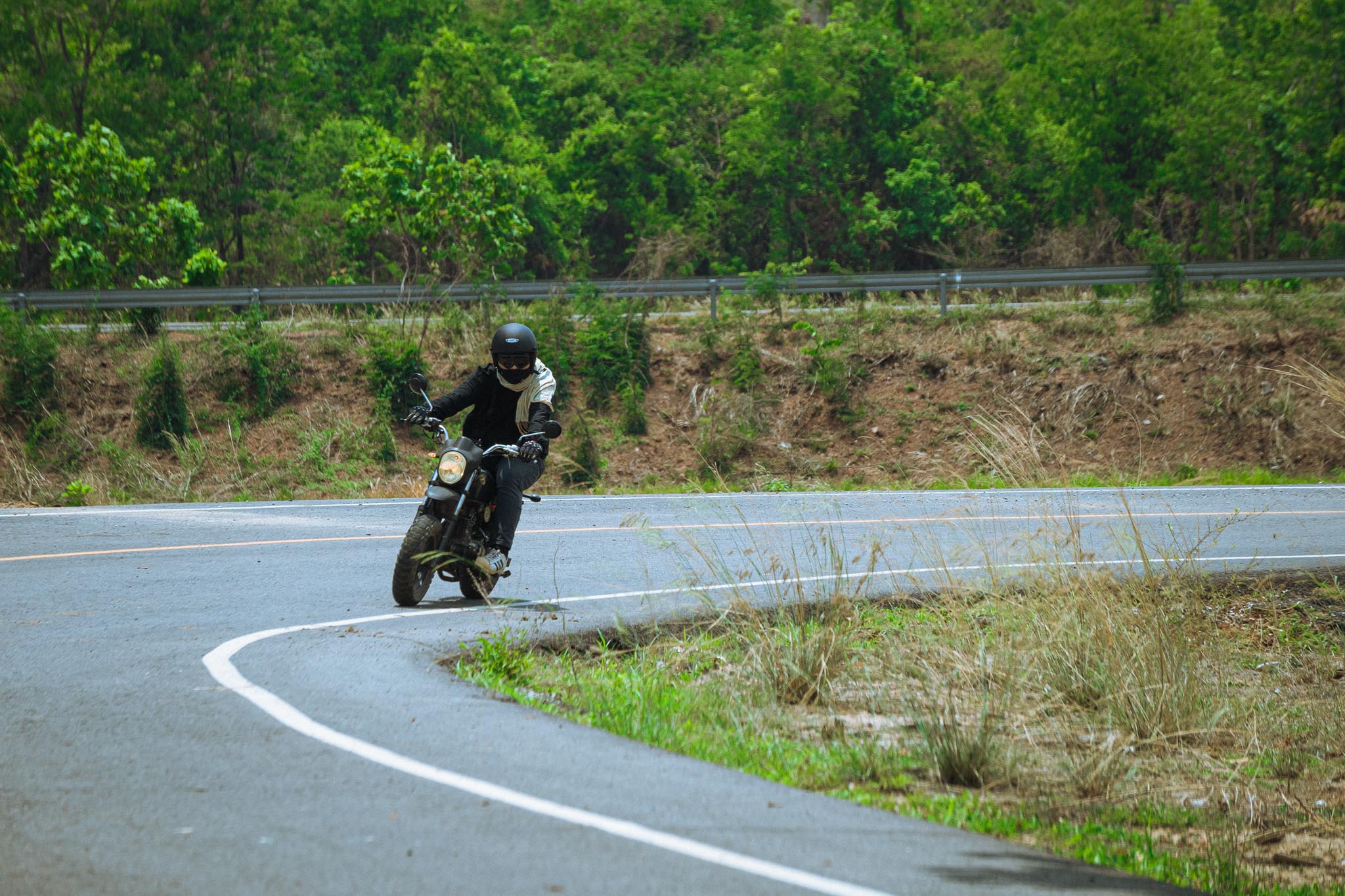 สำหรับเรา เหล่าไรเดอร์ จุดหมายปลายทางอาจไม่สำคัญเท่าระหว่างทาง  ซึ่งเส้นทางไปภูน้ำจั้น จัดได้ว่าเป็นเส้นทางที่สุดจะชิลล ขนาบไปด้วยวิวภูเขา สลับทุ่งนาและป่ายาง